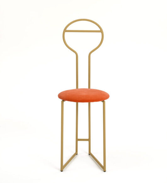 Made of powder-coated metal (gold or black) with a padded seat upolstered in velvet The low back version is 105 cm high. Only a few finishing are shown in this page.It is possible to ask for a selection of fine home and contract fabrics