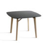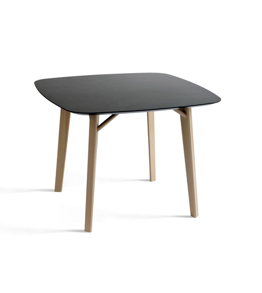 Tria Tetra is a squared table with rounded corners. Legs are made of solid oak. The Table top is in oak veneer, lacquered white or black on the backside with flared edge. Available in natural oak, Canaletto walnut, or lacquered anti scratch in off-white or anthracite black.